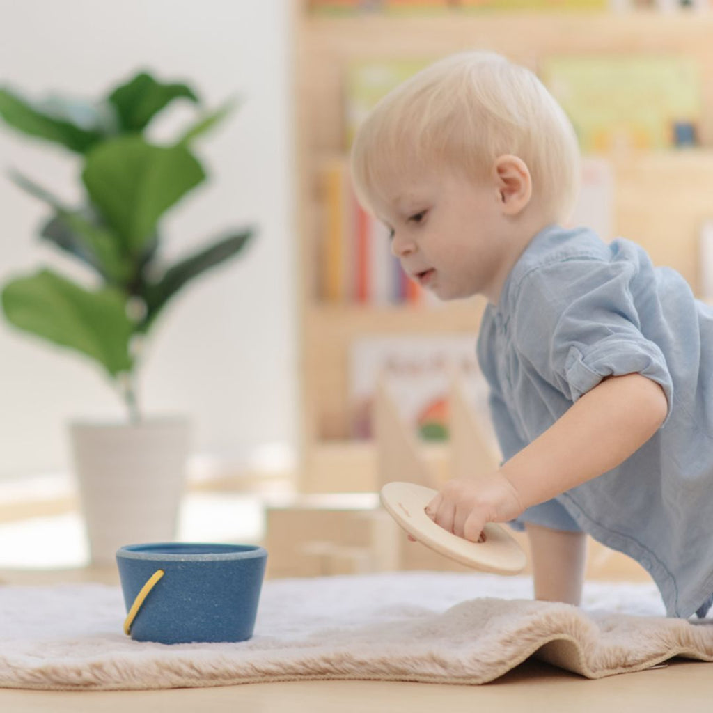 - Sustainably made in Thailand using chemical-free rubberwood, non-toxic glue, organic pigments, and water-based dyes. Set Includes: 1 bucket with lid (1 hole) and 1 red ball